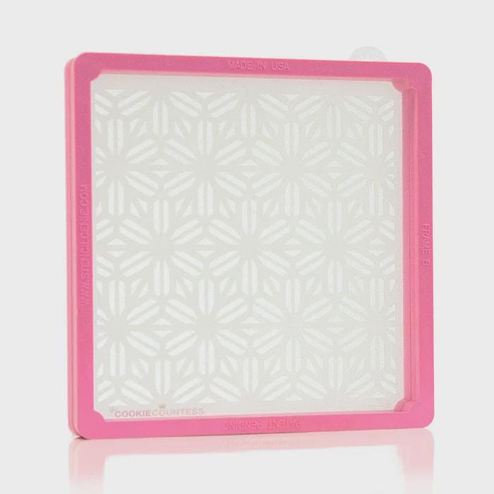 Need an extra set of hands while stenciling? The Stencil Genie® has come to the rescue! This stencil holder frame is the perfect fit for our stencils. You simply place your stencil between the 2 frames with embedded magnets, and place over your cookie. The frame has 2 sides of different thicknesses so you are sure to find the perfect fit.